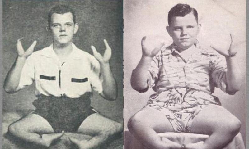 He was born with ectrodactyly, a condition which fused his fingers and toes together so they appeared like large claws. He couldn’t walk so he learned to crawl using his elbows.