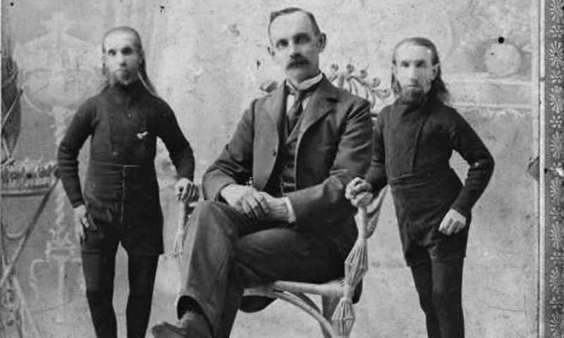 The Wild Men of Borneo weren’t quite from Borneo. They were from Knox County, Ohio. Hiram and Barney Davis went by their stage names Waino and Plutanor. They were only 40 inches tall but they could perform feats of strength that 300 pound strongmen would have difficulty performing.