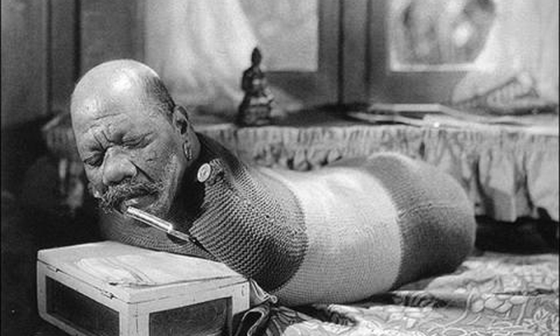 Prince Randian, also known as “The Snake Man†and “The Human Torsoâ€, was born without any limbs; a condition called tetra-amelia syndrome. P.T.