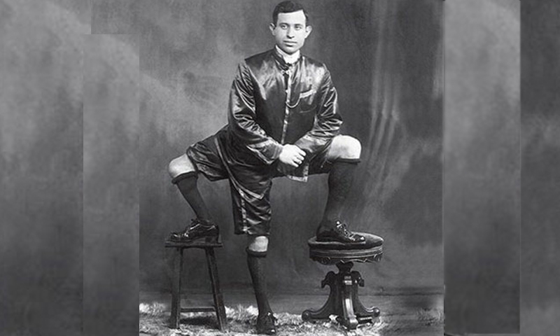 Francesco Lentini was born with three legs, four feet, and sixteen toes. He also had two sets of male genitalia. All three of his legs were different lengths which made walking difficult but not impossible. He was known to kick footballs with his third leg.
