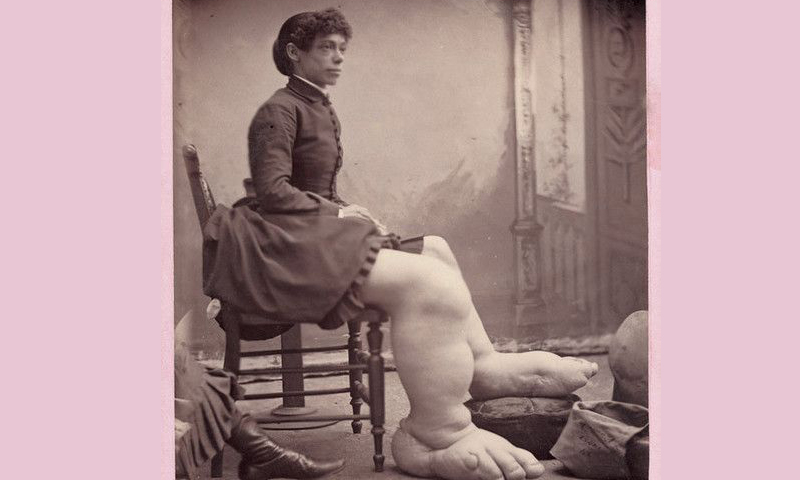 Fanny Mills suffered from Milroy disease. It was an extremely rare disease that caused a buildup of fluids in her lower extremities. Neither of her parents nor her siblings suffered from Milroy disease. Fanny’s feet grew to an enormous size–17 inches in length. She wore a custom made size 30 shoe.