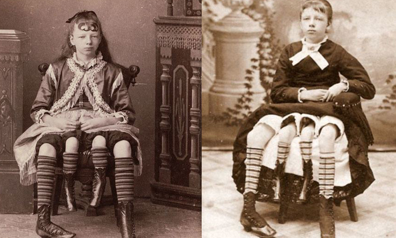 Lady Myrtle Corbin was born with two pelvises and two sets of external and internal genitalia. It was a rare condition known as dipygus. She had eight brothers and sisters who were normal.