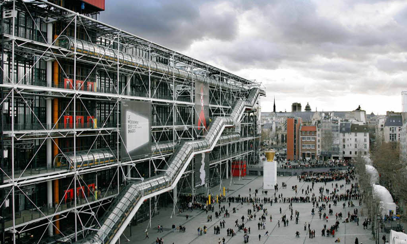 Even Paris, one of the most beautiful cities in the world, has some buildings that are actually not so beautiful. The Pompidou Center, a public library and museum of modern art, looks as if it was still under construction.