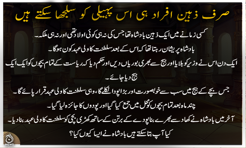 ذہانت آزمائیں اور اس پہیلی کا جواب دیں