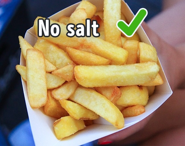 جب بھی آپ کسی ریسٹورنٹ میں لنچ یا ڈنر کے لئے جائیں اور فرینچ فرائز کھانے کا موڈ ہوجائے تو آرڈر دیتے ویٹر کو یہ بھی کہیں کہ فرائز نمک کے بغیر لائے۔ ایسا کرنے سے آپ کو ہمیشہ تازہ فرینچ فرائز ہی حاصل ہوں گی۔