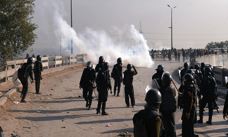 فیض آباد دھرنے کے مظاہرین کی آئی ایٹ کے قریب پولیس پر پتھراؤ کیا ہے۔ دھرنے سے متصل تمام علاقے  پر رینجرز کے دستے تعینات ہو گئے ہیں۔