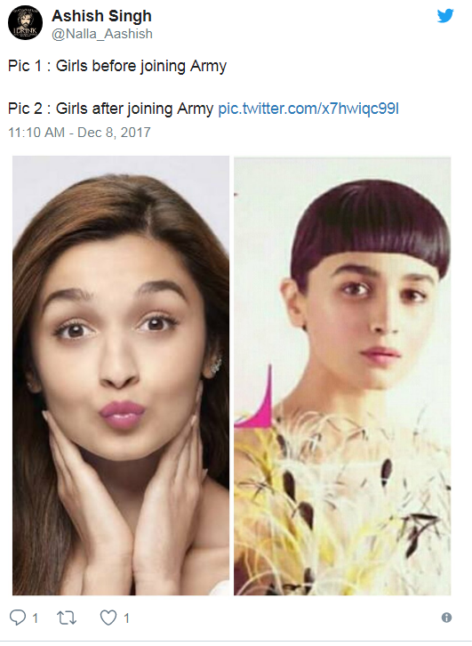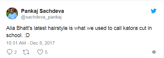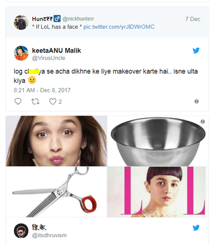 عالیہ نے جو ہیئر اسٹائل اپنایا اسے عام الفاظ میں کٹورا کٹ بھی کہا جاتا ہے اور آپ جانتے ہیں کہ سوشل میڈیا پر کسی کا بھی مذاق بنانے سے دریغ نہیں کیا جاتا۔ گذشتہ ماہ بھارتی آل راؤنڈر ہاردیک پانڈیا بھی اسی طرح کی صورتحال کا سامنا کرچکے ہیں جب انہیں ہیئر اسٹائل کی وجہ سے لیڈی گاگا کا میل ورژن قرار دے دیا گیا تھا۔