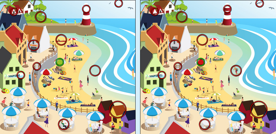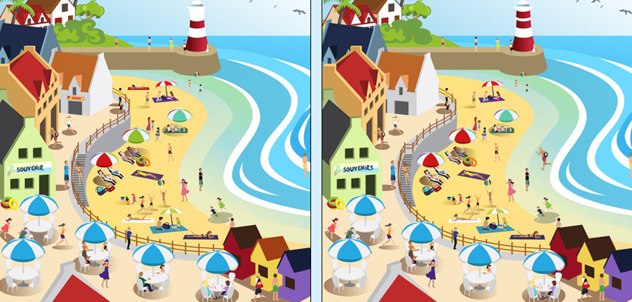 بغور جائزہ لے کر بتایئے کہ دونوں تصاویر میں کیا ایک دوسرے سے مختلف ہے۔ مثال کہ طور پر اگر پس منظر میں دیکھا جائے تو بعض پرندے پرواز کررہے ہیں لیکن اگر بغور دیکھا جائے تو دونوں تصاویر میں ان کی تعداد مختلف نظر آئے گی۔