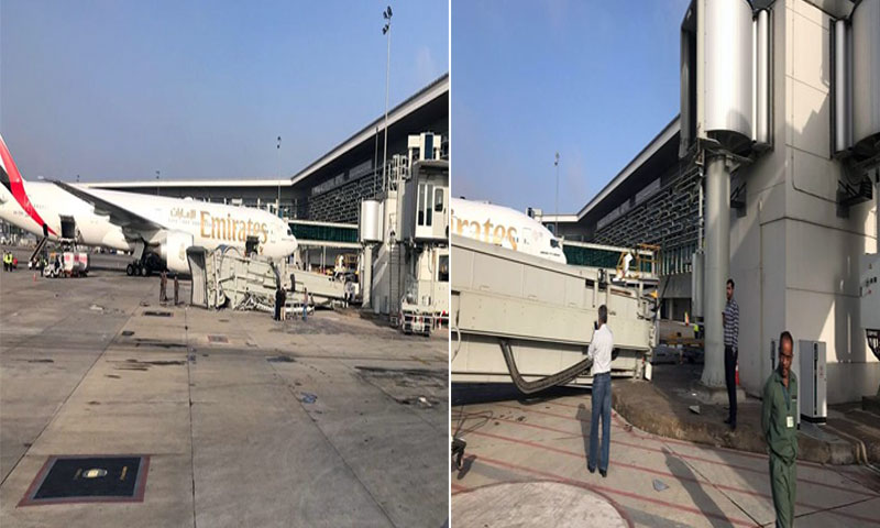 اسلام آباد انٹرنیشنل ایئرپورٹ پر مسافروں کو جہاز تک پہنچانے والا برج گر گیا