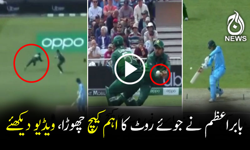 ناٹنگھم: پاکستان اور انگلینڈ کے درمیان کھیلے جارہے عالمی کپ کے چھٹے میچ میں بابر اعظم نے جوئے روٹ کا انتہائی اہم کیچ ڈراپ کیا۔