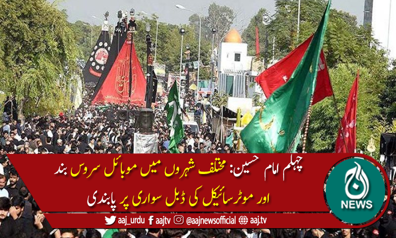 ملک بھر میں چہلم حضرت امام حسینؓ پر سیکیورٹی کے انتہائی سخت اقدامات کئے گئے ہیں،ملک کے بیشترعلاقوں میں موبائل فون سروس معطل اورموٹرسائیکل کی ڈبل سواری پر پابندی عائدہے ۔