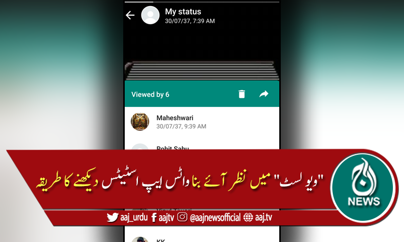 واٹس ایپ پر لگایا جانے والا اسٹیٹس واٹس ایپ کانٹیکٹ میں موجود تمام افراد با آسانی دیکھ سکتے ہیں، یہی نہیں اسٹیٹس لگانے والا شخص بھی باآسانی دیکھ سکتا ہے کہ کون سے فرد اور کتنے افراد اس کا اسٹیٹس دیکھ چکے ہیں۔