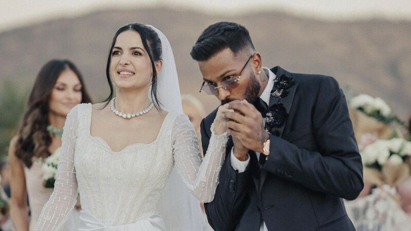 شادی کے لیے ہاردک نے سیاہ سوٹ اقور نتاشا اسٹینکووچ نے سفید گاؤن کا انتخاب کیا۔