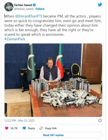 گلوکار فرحان سعید نے ملکی صورتحال پر افسوس کا اظہار اور عمران خان کی حمایت کرتے ہوئے لکھا کہ جب عمران خان وزیرِ اعظم بنے تو بہت سے فنکاروں نے ان کی حمایت کی اور انہیں مبار کباد بھی دی یہاں تک کہ یہ لوگ ان سے ملاقات کرنے بھی گئے۔