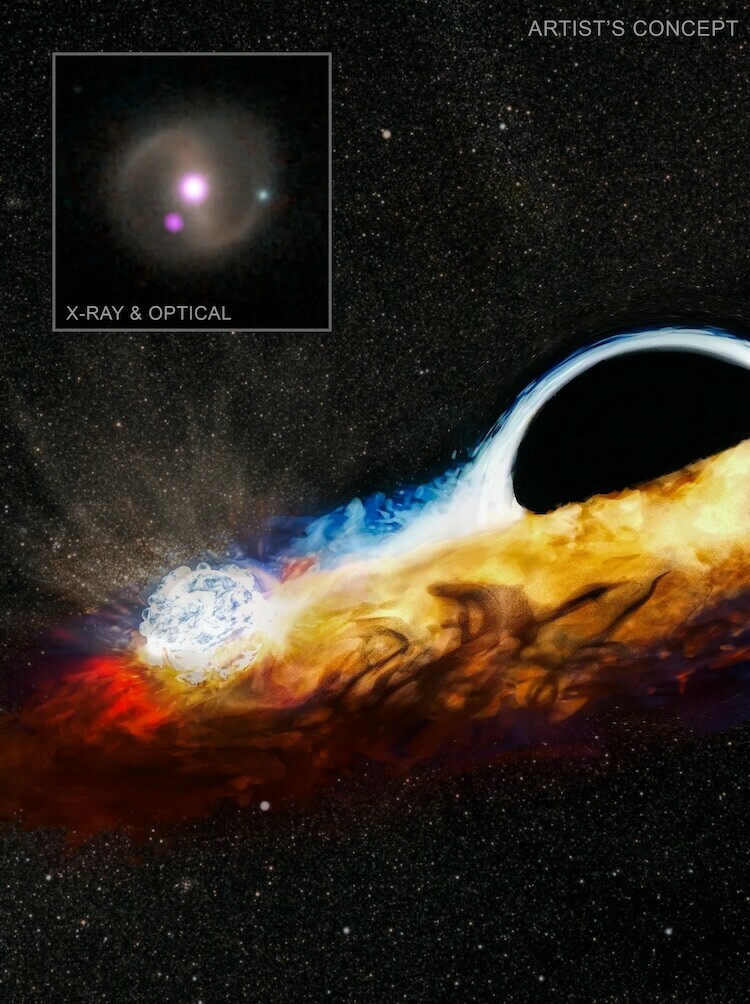 خلائی تحقیق کے امریکی ادارے ناسا کی چندرا ایکس رے آبزرویٹری نے ہبل ٹیلی اسکوپ کی مدد سے ایک ایسا منظر ریکارڈ کیا ہے جس میں دیکھا جاسکتا ہے کہ بلیک ہول ایک بڑے ستارے کو بیچ میں سے پھاڑ رہا ہے۔