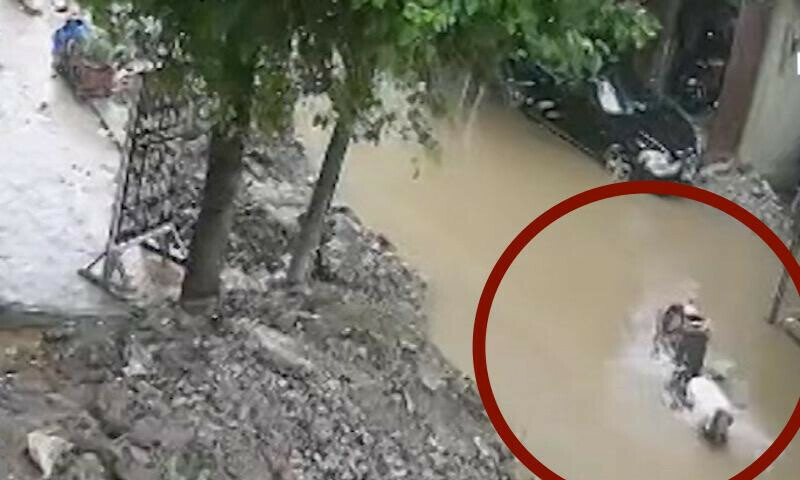آج نیوز کو موصول ہونے والی سی سی ٹی وی فوٹیج میں واضح طور پر دیکھا جا سکتا ہے کہ ایک شہری جیسے ہی موٹرسائیکل پر سوار ہو کر گھر سے نکلتا ہے، تو وہ بارش کے پانی میں چھپے سیوریج کے کھلے مین ہول میں گر جاتا ہے۔