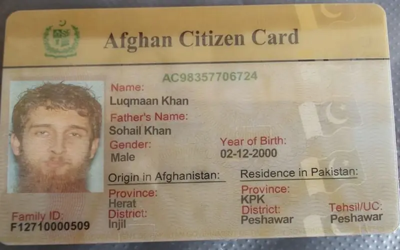 گرفتار نوجوان کا افغان سٹیزن کارڈ بھی سامنے آیا ہے، جس کے مطابق اس کا تعلق افغانستان کے صوبے ہرات سے ہے اور وہ پاکستان کے صوبے خیبرپختونخوا کے شہر پشاور میں مقیم تھا۔