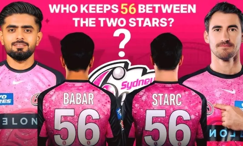 بگ بیش لیگ (بی بی ایل) کے 15 ویں ایڈیشن سے قبل آسٹریلوی فرنچائز سڈنی سکسرز نے پاکستان کے اسٹار کرکٹر بابر اعظم کے لیے منفرد جرسی نمبر متعارف کروا دیا۔ فرنچائز نے انہیں نیا جرسی نمبر 056 دینے کا اعلان کیا ہے، جس نے شائقین میں نئی دلچسپی پیدا کر دی ہے۔