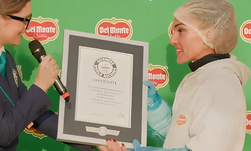 گنیز ورلڈ ریکارڈز کے مطابق وسطی یورپ کے ملک، سلوواکیہ کی ایک فیکٹری ورکر ڈومینیکا گاسپارووا نے چند سیکنڈز میں انناس چھیلنے اور ٹکڑوں میں کاٹنے کا ریکارڈ قائم کر دیا۔