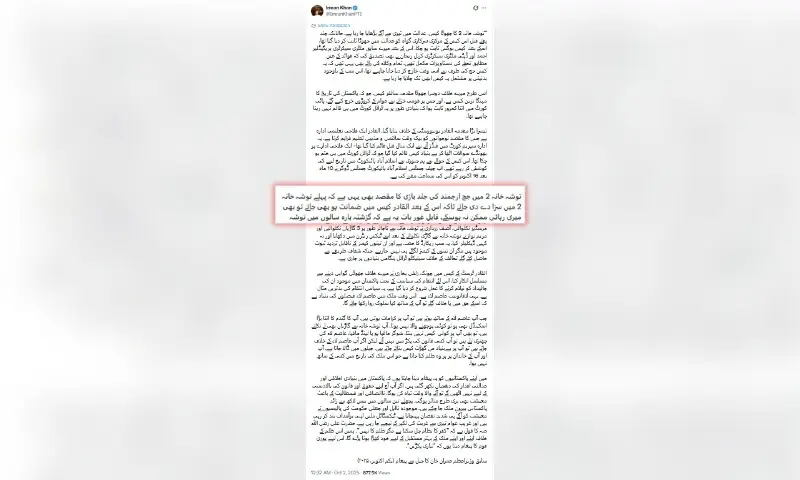 پاکستان کے پہلے سکھ صحافی اور اینکر پرسن ہرمیت سنگھ نے بھی اس جانب توجہ دلاتے ہوئے ’ایکس‘ پر لکھا کہ ”عمران خان نے یکم اکتوبر کو ہی بتادیا تھا کہ توشہ خانہ 2 میں جج ارجمند کی جلد بازی کا مقصد بھی یہی ہے کہ پہلے توشہ خانہ 2 میں سزا دے دی جائے تاکہ اس کے بعد القادر کیس میں ضمانت ہو بھی جائے تو بھی میری رہائی ممکن نہ ہوسکے۔“