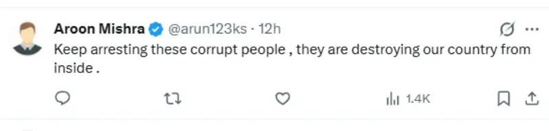ایک صارف نے ایکس پر اپنی پوسٹ میں لکھا کہ، ”ان کرپٹ لوگوں کو پکڑتے رہیں، یہ ہمارے ملک کو اندر سے تباہ کر رہے ہیں۔“