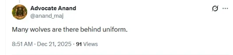 ایڈووکیٹ آنند نامی بھارتی صارف نے لکھا کہ، ”اس وردی کے پیچھے اور بھی بہت سے بھیڑیے موجود ہیں۔“