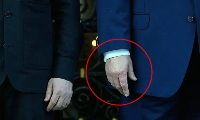 مگر صحافیوں سے بات کے دوران ٹرمپ کے دائیں ہاتھ پر کنسیلر واضح طور پر دکھائی دیا، جس نے سوشل میڈیا صارفین کی توجہ حاصل کی۔
