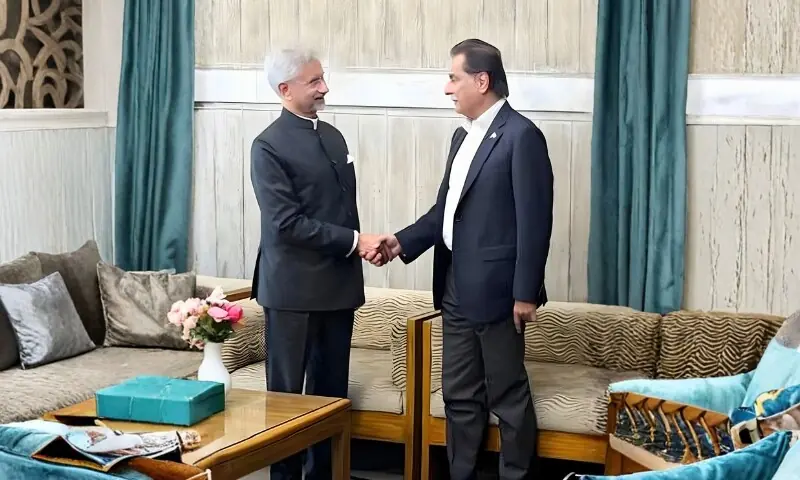 اسپیکر قومی اسمبلی اور بھارتی وزیرِ خارجہ کا ڈھاکہ میں مصافحہ، مسکراہٹوں کا تبادلہ