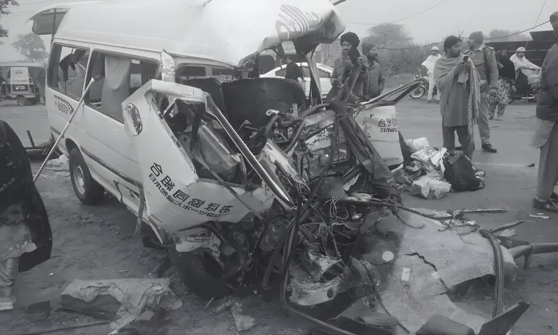 جھنگ: یونیورسٹی بس اور وین میں تصادم، 2 طلبہ سمیت 14 افراد جاں بحق