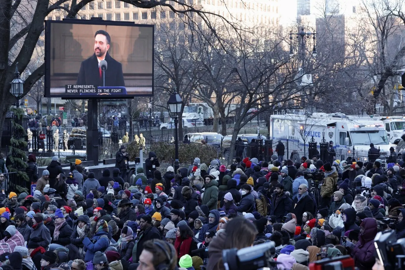امریکا کے گنجان آباد شہر نیویارک کے نئے میئر ظہران ممدانی نے اپنے عہدے کا حلف اٹھالیا ہے۔ وہ چار نومبر 2025 کو ہونے والے انتخابات میں نیو یارک سٹی کے پہلے مسلم، جنوبی ایشیائی اورکم عمر ترین میئر منتخب ہوئے تھے۔ میئر کے عہدے کا حلف دو مراحل میں انجام پایا۔ نجی طور پر آدھی رات سٹی ہال سب وے میں اٹارنی جنرل کی موجودگی میں حلف برداری ہوئی، جبکہ عوامی تقریب دوپہر ایک بجے سٹی ہال پلازہ میں سینیٹر برنی سینڈرز کی نگرانی میں منعقد کی گئی جس میں اہم سیاسی شخصیات، دوست احباب اور اہلِ خانہ کے ساتھ ہزاروں افراد نے شرکت کی۔ حلف براداری کے بعد ممدانی نے اپنے آفس کادورہ کیا جہاں ٹوٹ پھوٹ اور گندگی دیکھ کر انہوں نے افسوس کا اظہار کیا۔