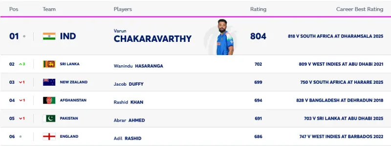 اس کے علاوہ آل راؤنڈرز کی فہرست میں صائم ایوب کی ایک درجہ تنزلی کے بعد زمبابوے کے سکندر رضا دوبارہ پہلی پوزیشن پر آ گئے ہیں۔