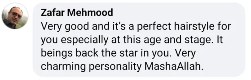 ایک اور صارف کے مطابق، ”اس عمر میں یہ بالوں کا انداز آپ کی شخصیت کو مزید نکھار رہا ہے۔“