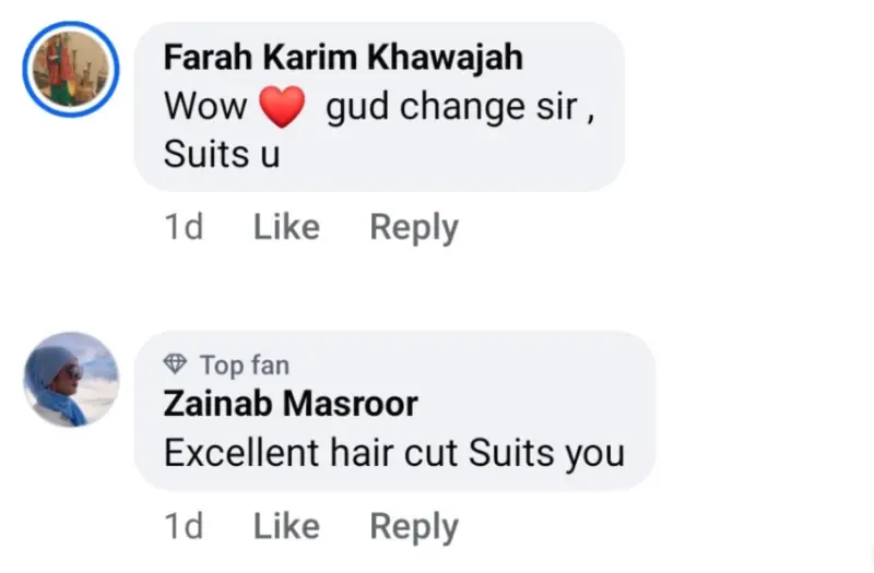 ایک مداح نے لکھا، ”یہ اسٹائل آپ پر بہت جچ رہا ہے، ایسا لگتا ہے جیسے اسی کی دہائی کا اسٹار واپس آ گیا ہو۔“