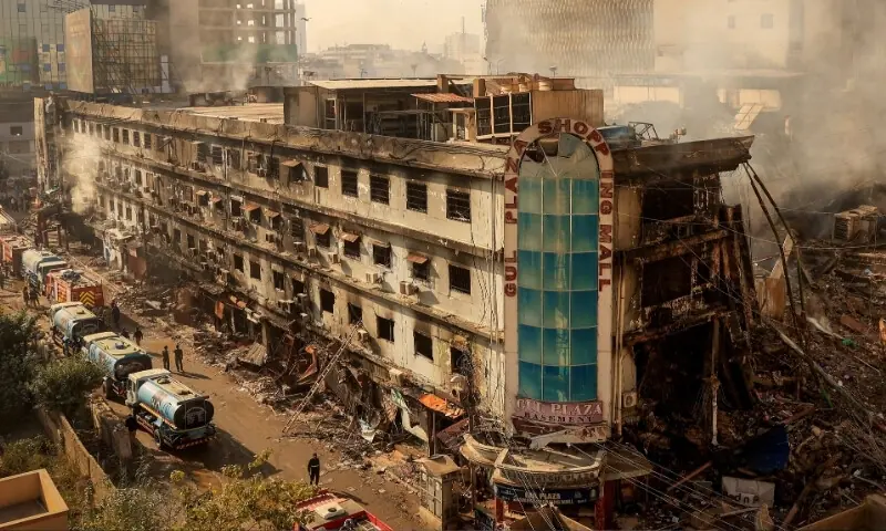 - گل پلازہ میں آگ سے جاں بحق افراد کی مجموعی تعداد 27 جبکہ 85 اب بھی لاپتہ ہیں