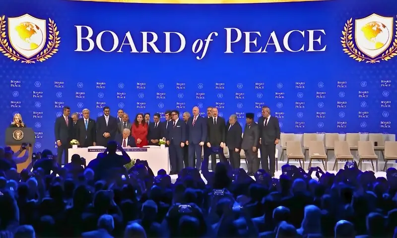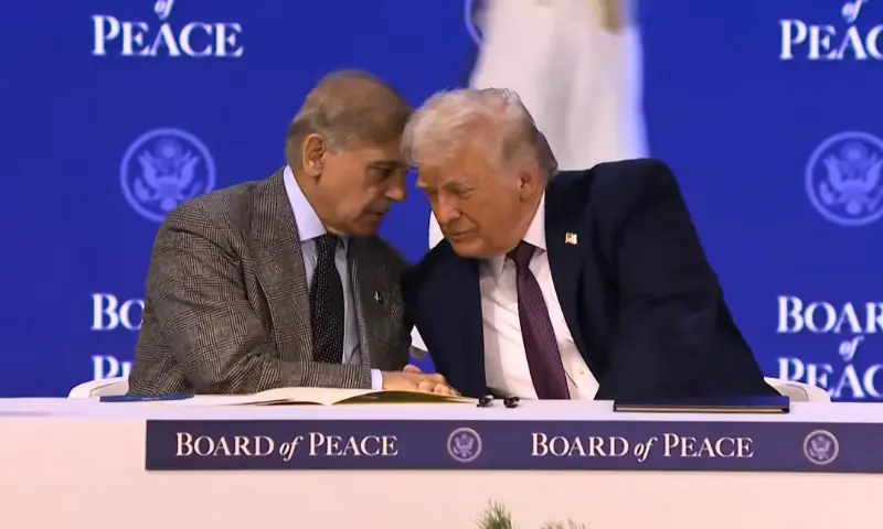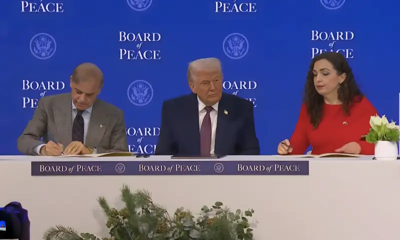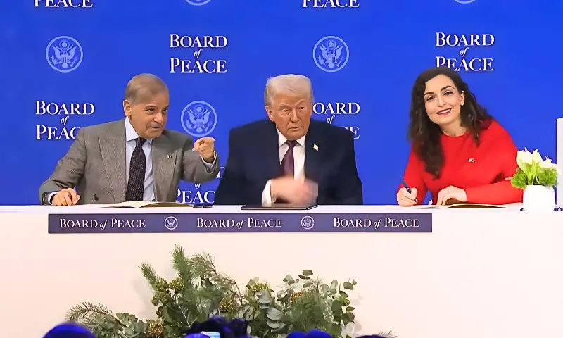 پاکستان کے وزیراعظم شہباز شریف نے غزہ میں قیام امن کے لیے امریکی صدر ڈونلڈ ٹرمپ کے قائم کردہ ’غزہ بورڈ آف پیس‘ کے مسودے پر دستخط کر دیے ہیں۔ یہ دستخط سوئٹرزلینڈ کے شہر ڈیووس میں جاری عالمی اقتصادی فورم کے موقع پر منعقدہ تقریب میں کیے گئے، جس میں امریکی صدر ڈونلڈ ٹرمپ سمیت متعدد عالمی رہنماؤں نے شرکت کی۔ اس موقع پر پاکستان کے علاوہ سعودی عرب، ترکیہ، بحرین، مراکش، ارجنٹینا، آرمینیا، متحدہ عرب امارات، قطر، ازبکستان، پیراگوئے، آذربائیجان، بلغاریہ، ہنگری، انڈونیشیا، اردن، قازقستان، کوسوو اور منگولیا کے رہنماؤں نے بھی مسودے پر دستخط کیے۔ تقریب سے خطاب میں صدر ٹرمپ نے غزہ پیس بورڈ میں شامل ہونے والے ممالک کا شکریہ ادا کرتے ہوئے کہا کہ مزید کئی ممالک اس امن اقدام کا حصہ بننے کے خواہاں ہیں۔
