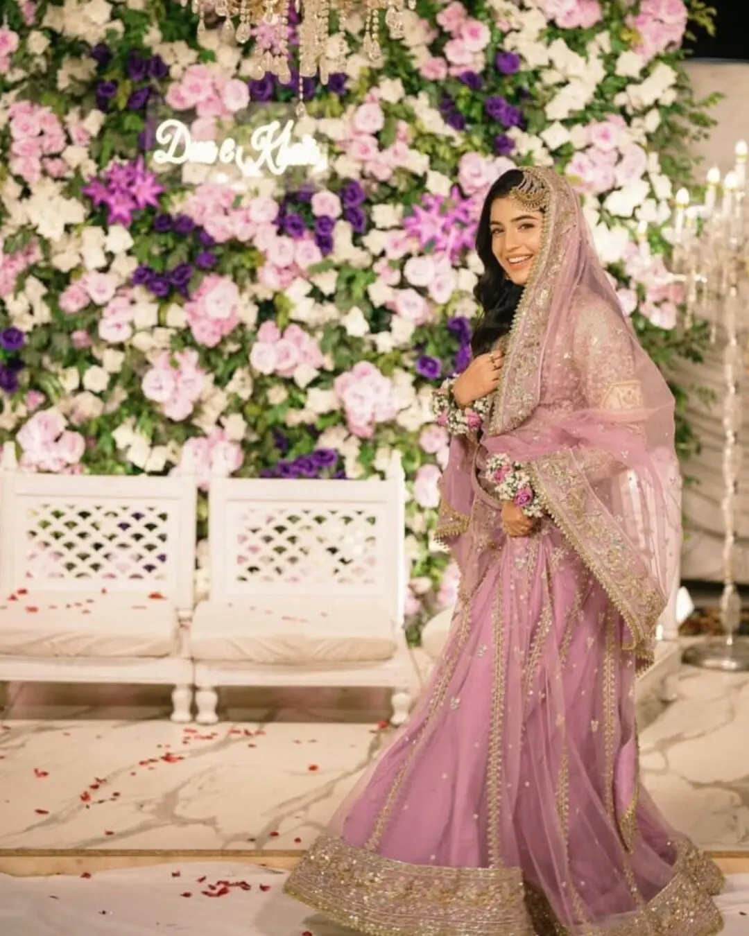 اس موقع پر انہوں نے نرم ماؤو پنک انارکلی زیب تن کی، جس پر نفیس گولڈ اور تلا ورک کیا گیا تھا۔