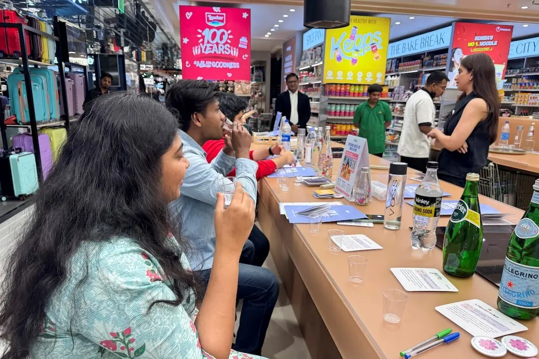 اس بلائنڈ ٹیسٹنگ میں شرکاء چھوٹے گلاسز میں فرانس، اٹلی اور بھارت کے مختلف منرل واٹر نمونے چکھتے ہیں اور ان میں موجود معدنیات، نمکین ذائقے اور گیس کا فرق محسوس کرتے ہیں۔