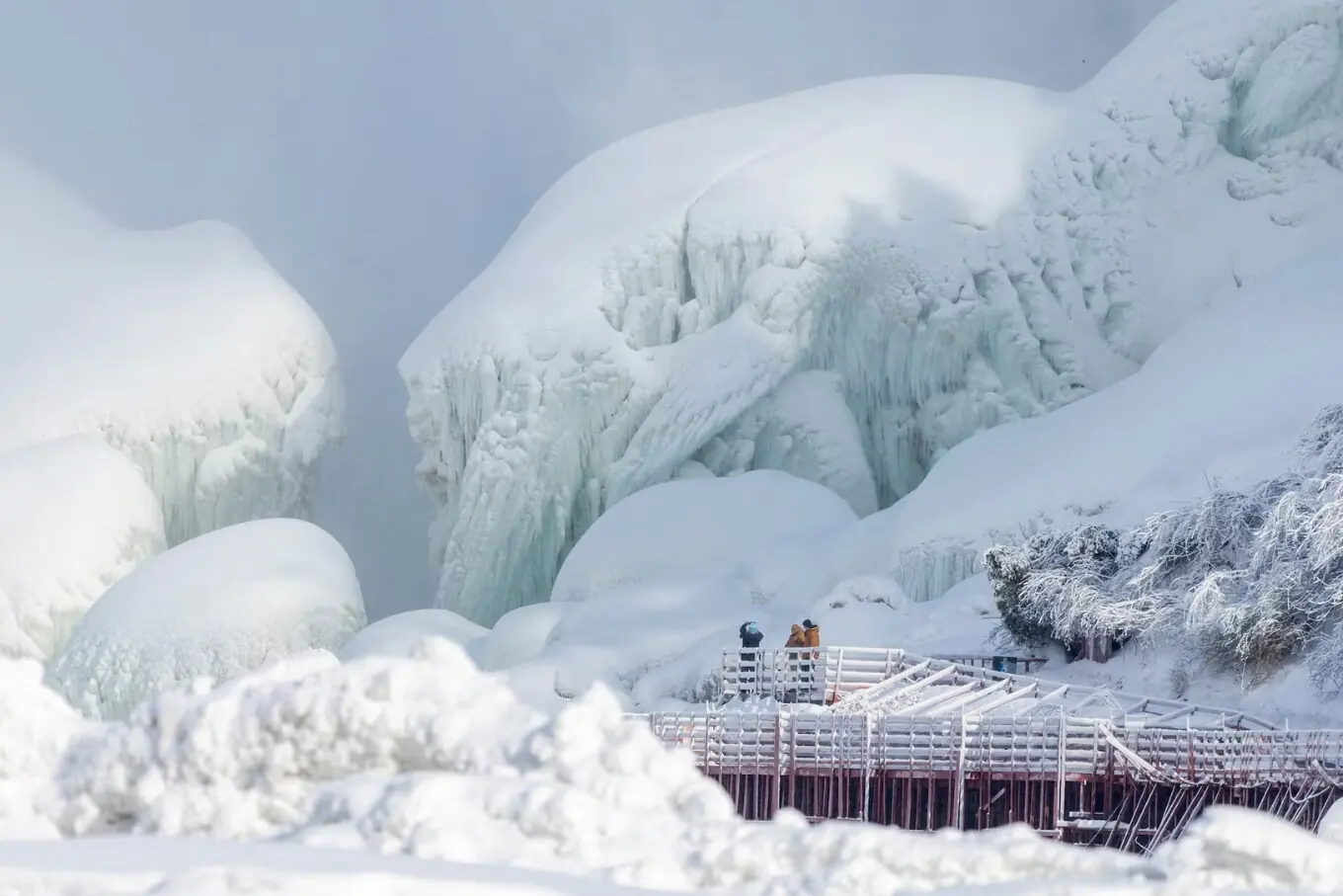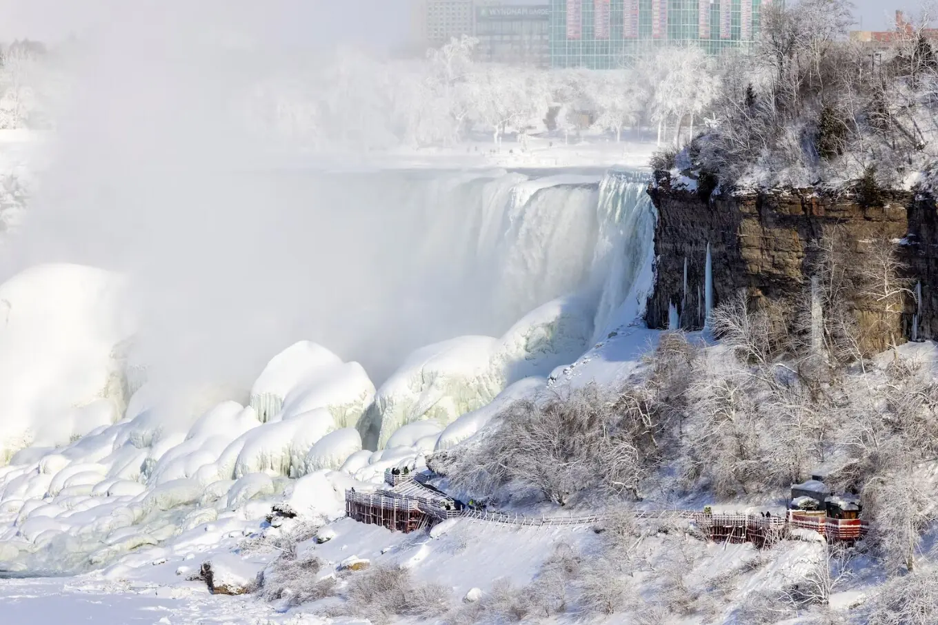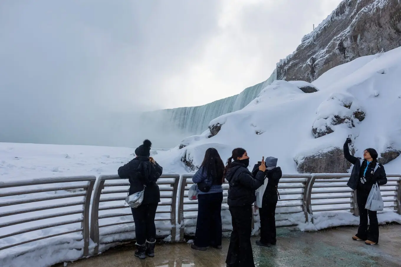 نیاگرا فال دنیا کی مشہور تین آبشاروں کا مجموعہ ہے جو کینیڈا کے صوبہ اونٹاریو اور امریکا کی ریاست نیویارک کے درمیان دریائے نیاگرا پر واقع ہیں، جن کی اونچائی تقریباً 50 میٹر اور چوڑائی 323 میٹر تک ہے، اور یہ تقریباً 12 ہزار سال پرانے ہیں جوگلیشیئرز کے پگھلنے سے وجود میں آئے۔ خطے میں شدید سردی کی لہر کے باعث نیاگرا فال جزوی طور پر جم گئے، جس سے یہ ایک ناقابلِ فراموش برفیلا منظردیکھنے کو ملا۔ اس نایاب منظر کو دیکھنے کے لیے ہزاروں سیاح کینیڈا اور امریکا کی سرحد پر جمع ہو رہے ہیں، جو سرد موسم کے باوجود اس قدرتی عجوبے کی تعریف کر رہے ہیں اور تصاویر لے رہے ہیں۔