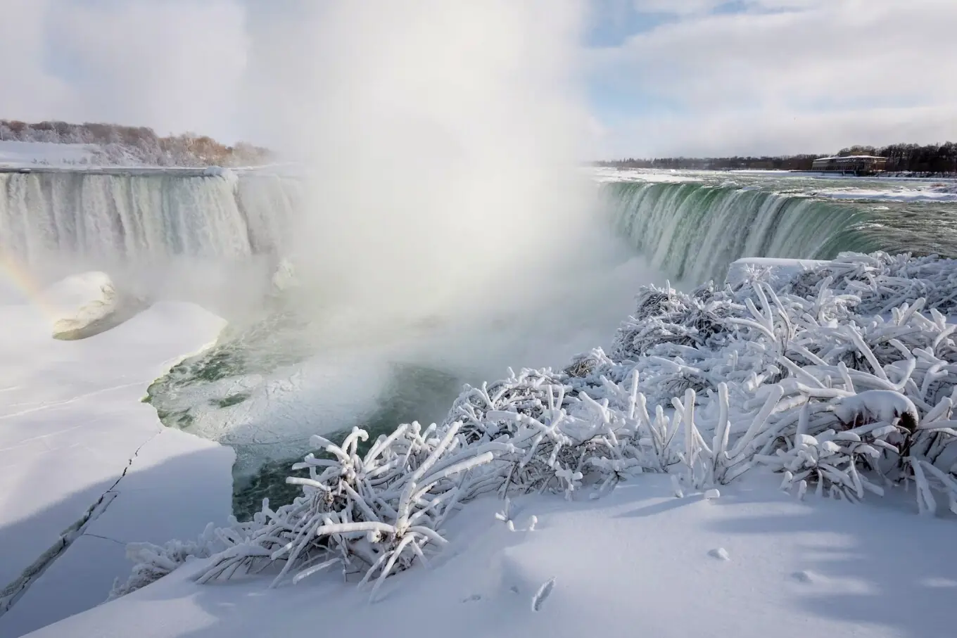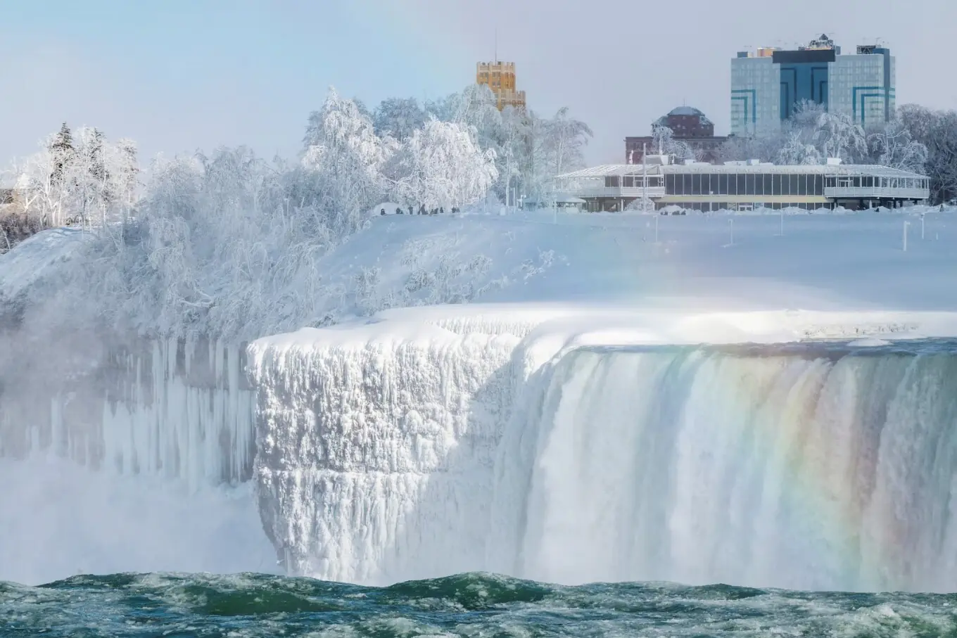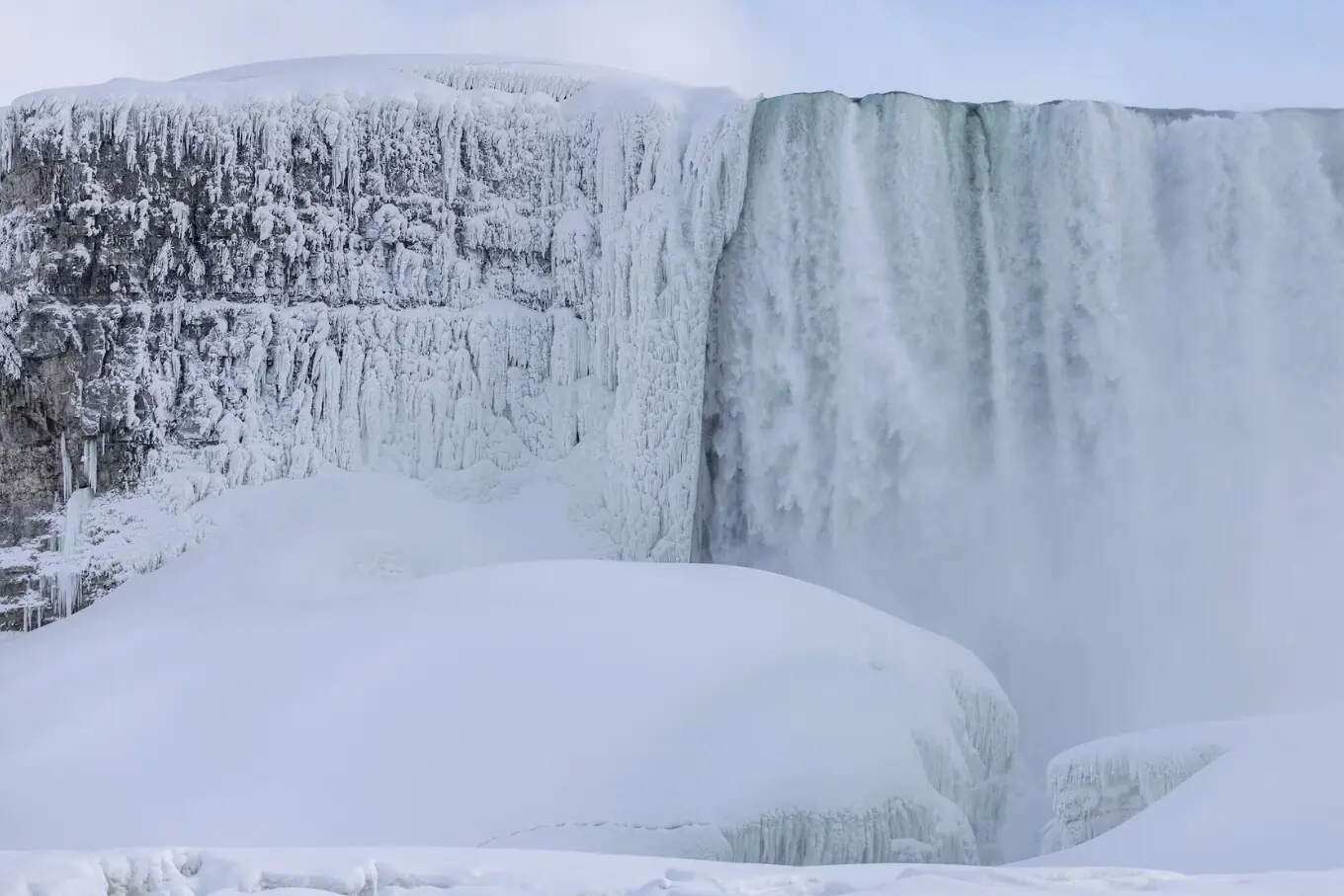 نیاگرا فال دنیا کی مشہور تین آبشاروں کا مجموعہ ہے جو کینیڈا کے صوبہ اونٹاریو اور امریکا کی ریاست نیویارک کے درمیان دریائے نیاگرا پر واقع ہیں، جن کی اونچائی تقریباً 50 میٹر اور چوڑائی 323 میٹر تک ہے، اور یہ تقریباً 12 ہزار سال پرانے ہیں جوگلیشیئرز کے پگھلنے سے وجود میں آئے۔ خطے میں شدید سردی کی لہر کے باعث نیاگرا فال جزوی طور پر جم گئے، جس سے یہ ایک ناقابلِ فراموش برفیلا منظردیکھنے کو ملا۔ اس نایاب منظر کو دیکھنے کے لیے ہزاروں سیاح کینیڈا اور امریکا کی سرحد پر جمع ہو رہے ہیں، جو سرد موسم کے باوجود اس قدرتی عجوبے کی تعریف کر رہے ہیں اور تصاویر لے رہے ہیں۔