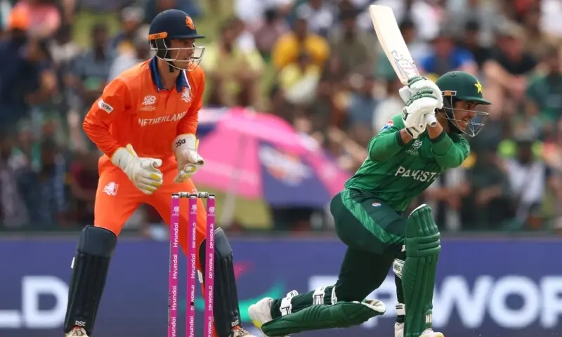 آئی سی سی مینز ٹی ٹوئنٹی ورلڈ کے افتتاحی میچ میں پاکستان نے سنسنی خیز مقابلے کے بعد نیدرلینڈز کو 3 وکٹوں سے شکست دی تھی، جس کے بعد پاکستان کی بیٹنگ لائن پر ایک بار پھر سوالات اُٹھائے جا رہے ہیں۔