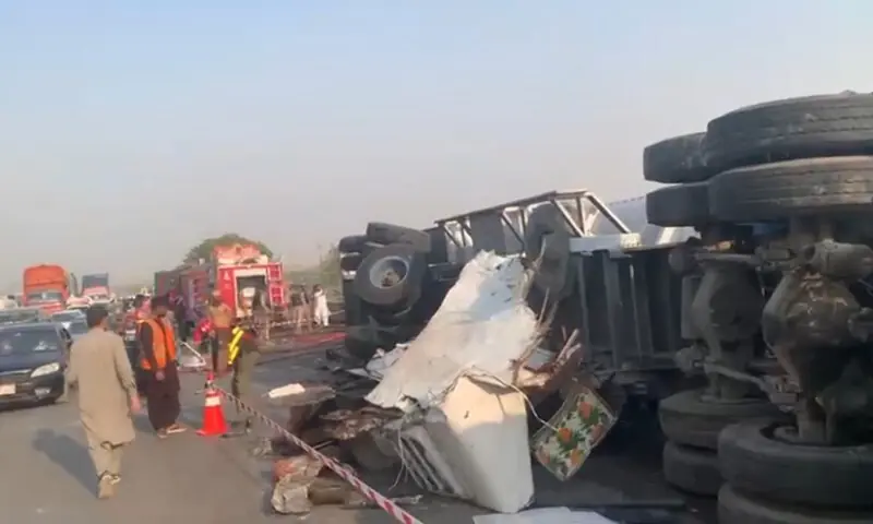 موٹر وے پولیس کا کہنا ہے کہ حادثے میں جاں بحق افراد کی لاشوں کو بقائی اور زخمی ہونے والوں کو سول اسپتال منتقل کردیا گیا ہے، جائے حادثہ سے اب تک 13 افراد کی لاشوں کو نکالا جاچکا ہے۔