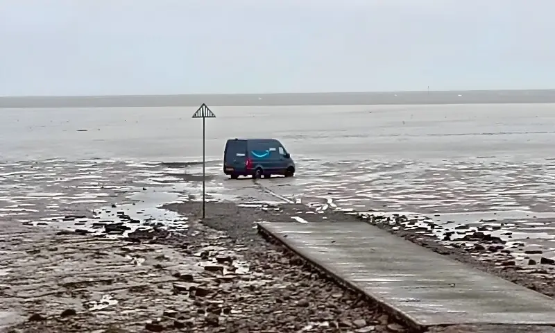 برطانیہ میں ایک ایمازون ڈلیوری وین ایک انتہائی خطرناک ساحلی راستے پر پھنس گئی جب ڈرائیور نے جی پی ایس کے اشارے پر مڈ فلیٹس کے ذریعے تھیمز ایسچری کے ایک جزیرے تک پہنچنے کی کوشش کی۔ یہ جزیرہ فوجی استعمال میں ہے۔
