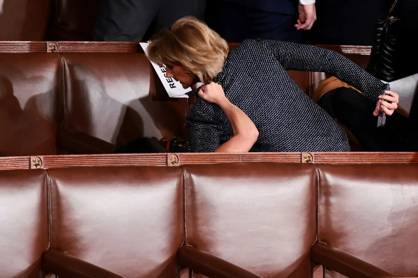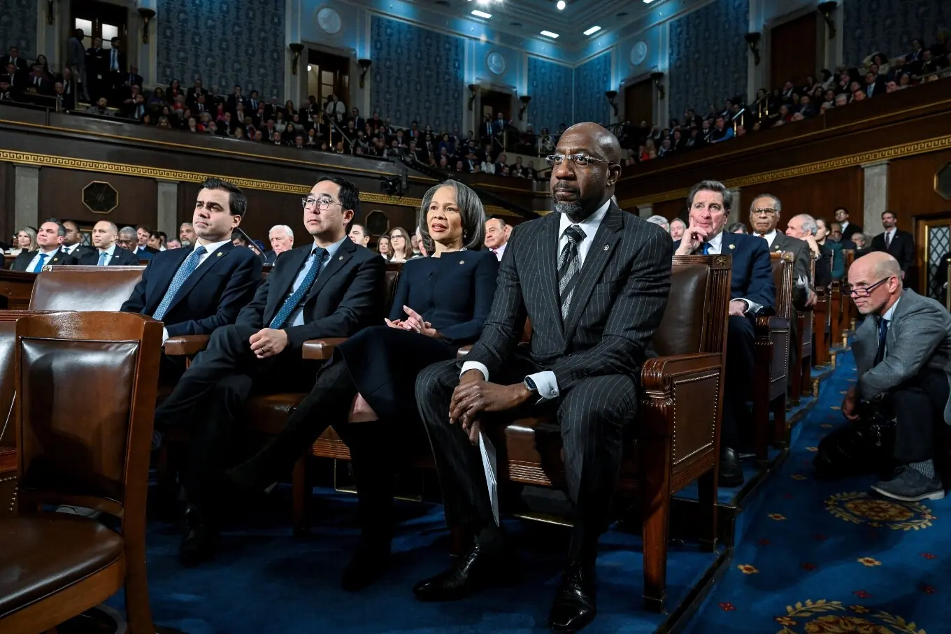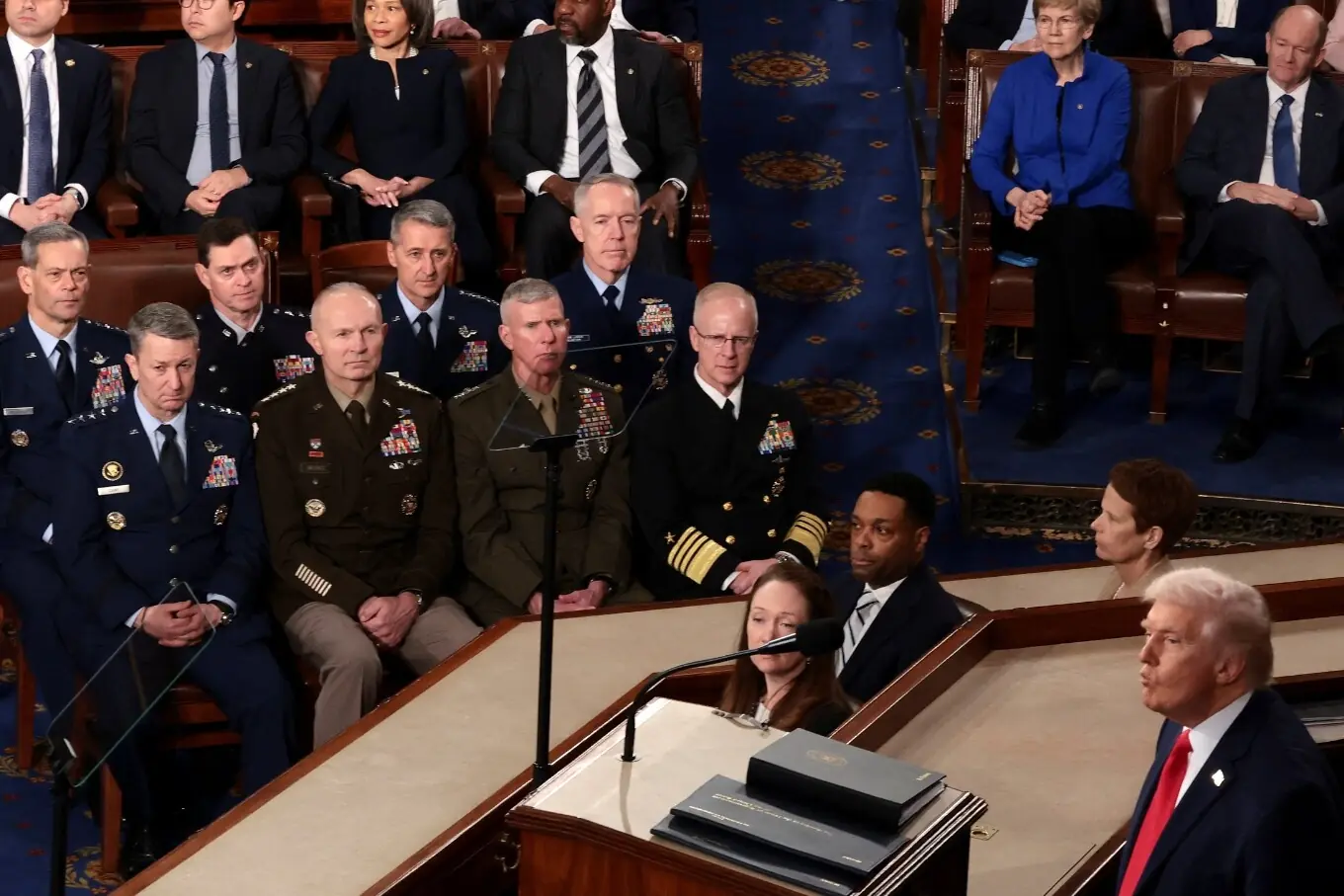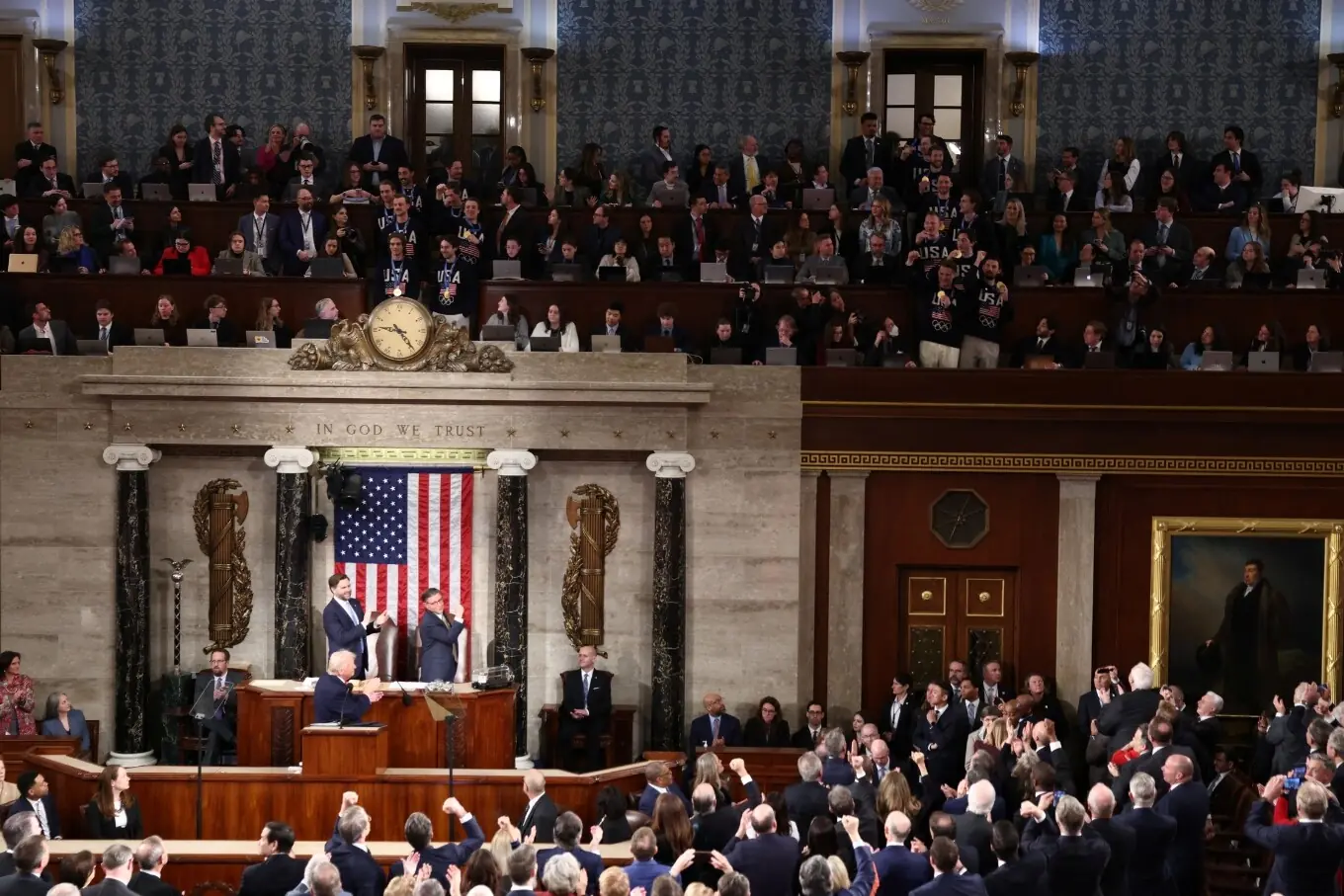 امریکی صدر ڈونلڈ ٹرمپ نے واشنگٹن ڈی سی کی کیپیٹل بلڈنگ میں 24 فروری 2026 کو اپنے دوسرے دورِ صدارت کا پہلا سالانہ یعنی ’اسٹیٹ آف دی یونین‘ خطاب کیا۔ اس تقریب میں اہم شخصیات جیسے نائب صدر، اسپیکر آف دی ہاؤس، سپریم کورٹ کے ججز، کابینہ ارکان اور اولمپک ہاکی ٹیم، خلا باز اور اپسٹین متاثرین کے ارکان شامل تھے۔ ہال کا ماحول پرجوش اور متوازن تھا۔ ریپبلکن اراکین کی تالیاں اور ڈیموکریٹس کی خاموش تنقید کے بیچ ٹرمپ نے معاشی بحالی، سرحدی تحفظ اور ایگزیکٹو آرڈرز پر زور دیتے ہوئے تقریر کی، جو مڈ ٹرم الیکشن سے قبل ووٹرز کو متحد کرنے کی کوشش تھی۔ رائٹرز نے تصاویر کے ذریعے صدر ٹرمپ کے اسٹیٹ آف دی یونین خطاب، کانگریس کے ردعمل اور ہال کے مناظر کو مؤثر انداز میں پیش کیا۔
