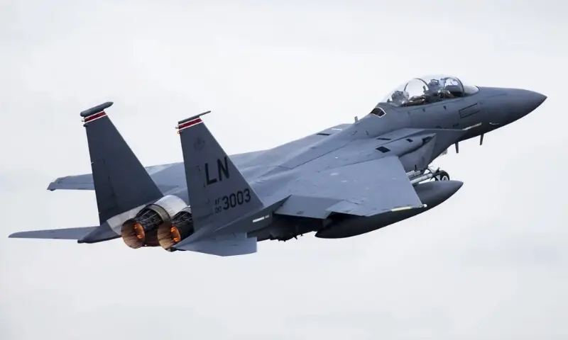 سوشل میڈیا پر وائرل ہونے والی ایک ویڈیو میں امریکی ایف 15 ای اسٹرائیک ایگل جنگی طیارے کو شعلوں کے ساتھ نیچے کی جانب گھومتے ہوئے گرتے دیکھا جا سکتا ہے۔ رپورٹس کے مطابق پائلٹ محفوظ رہا ہے۔
