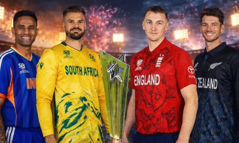 یوں ٹی 20 ورلڈ کپ 2026 کے سیمی فائنلز میں نیوزی لینڈ، جنوبی افریقا، بھارت اور انگلینڈ کی ٹیمیں فائنل میں رسائی کے لیے مدمقابل ہوں گی۔