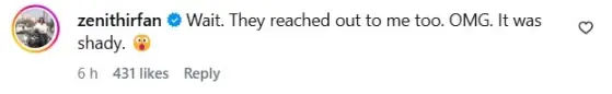 زینت عرفان نے کہا: ”مجھے بھی یہی پیغام آیا اور یہ بہت مشکوک لگتا ہے۔“
