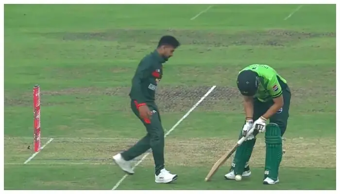 بنگلا دیش کے خلاف 39 ویں اوور میں سلمان علی آغا 62 گیندوں پر 64 رنز بنا کر کھیل رہے تھے جب محمد رضوان نے گیند سیدھی بولر کی جانب کھیلی، اس دوران آغا کریز سے باہر تھے اور بولر کو گیند دینا چاہی مگر مہدی حسن اسپورٹس مین اسپرٹ بھول گئے اور فوراً گیند اٹھا کر وکٹوں پر دے ماری۔