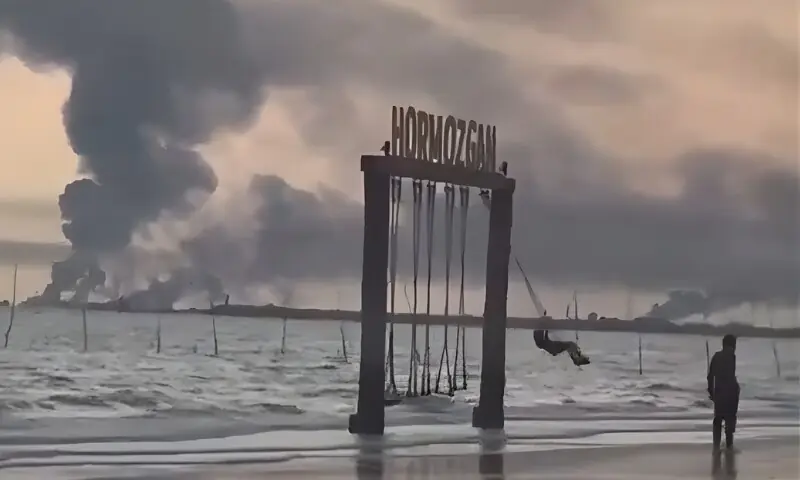 آبنائے ہرمز کے قریب واقع ایرانی شہر بندر عباس میں جنگ کے اثرات کے درمیان ایک منفرد منظر نے سوشل میڈیا پر توجہ حاصل کر لی ہے۔ تصویر میں ایک کمسن بچی ساحل سمندر پر جھولے جھولتی نظر آتی ہے، جبکہ اس کے پیچھے دھوئیں کے بادل واضح طور پر دکھائی دیتے ہیں۔