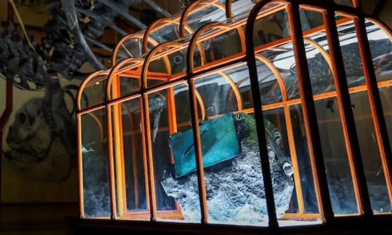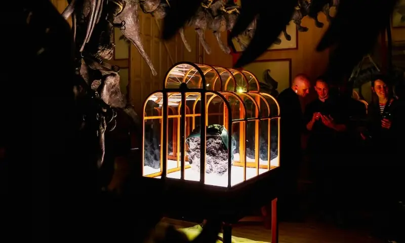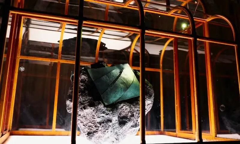 یہ سی گرین رنگ کا بیگ ایمسٹرڈیم کے ’آرٹ زو میوزیم‘ میں ایک خاص انداز میں نمائش کے لیے پیش کیا گیا ہے، جہاں اسے ٹی ریکس کے مجسمے کے نیچے پنجرے میں ایک چٹان پر رکھا گیا ہے۔ یہ نمائش 11 مئی تک جاری رہے گی، جس کے بعد اسے نیلام کیا جائے گا اور اس کی ابتدائی قیمت پانچ لاکھ ڈالر سے زائد رکھی گئی ہے۔