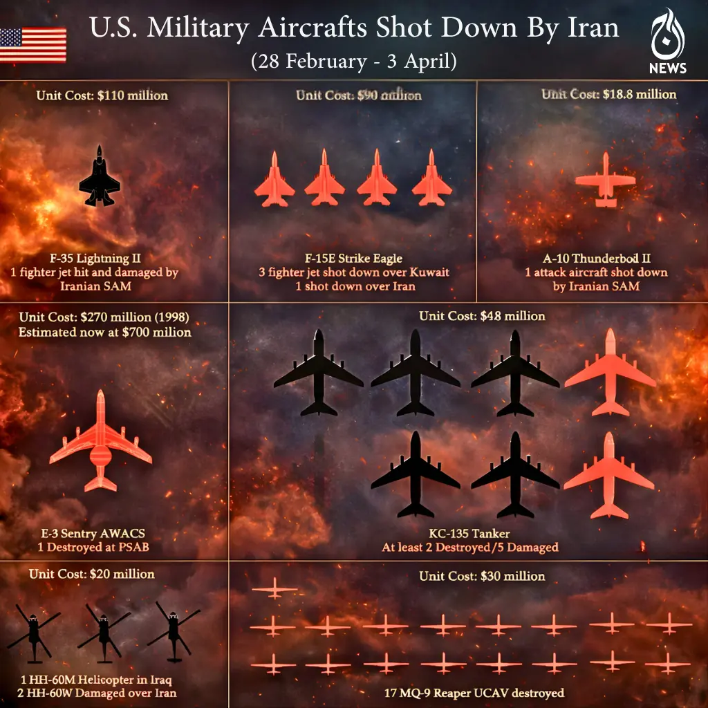 ایران جنگ میں تباہ شدہ امریکی طیاروں کی تفصیلات، دو ارب ڈالرز کا جھٹکا